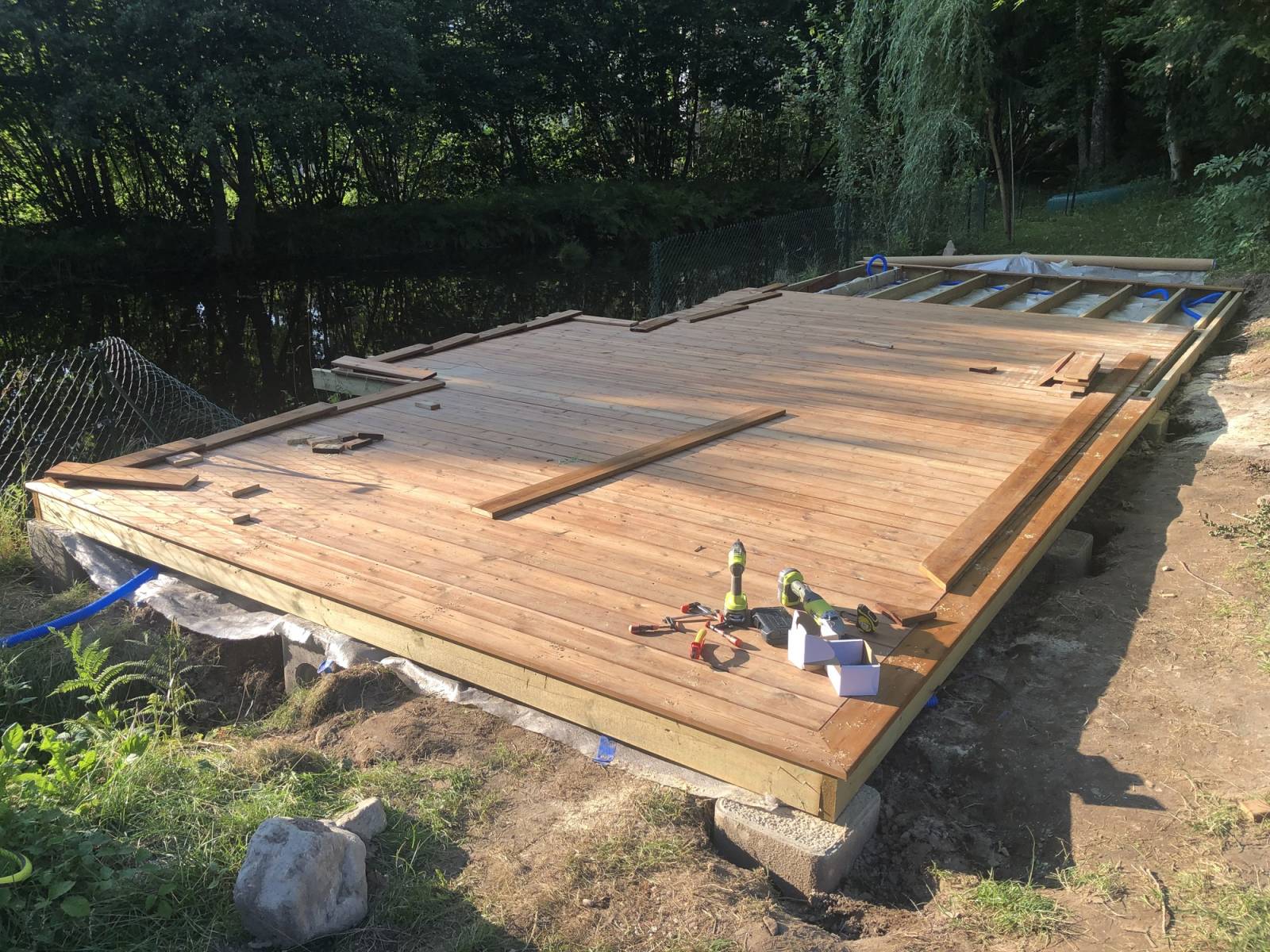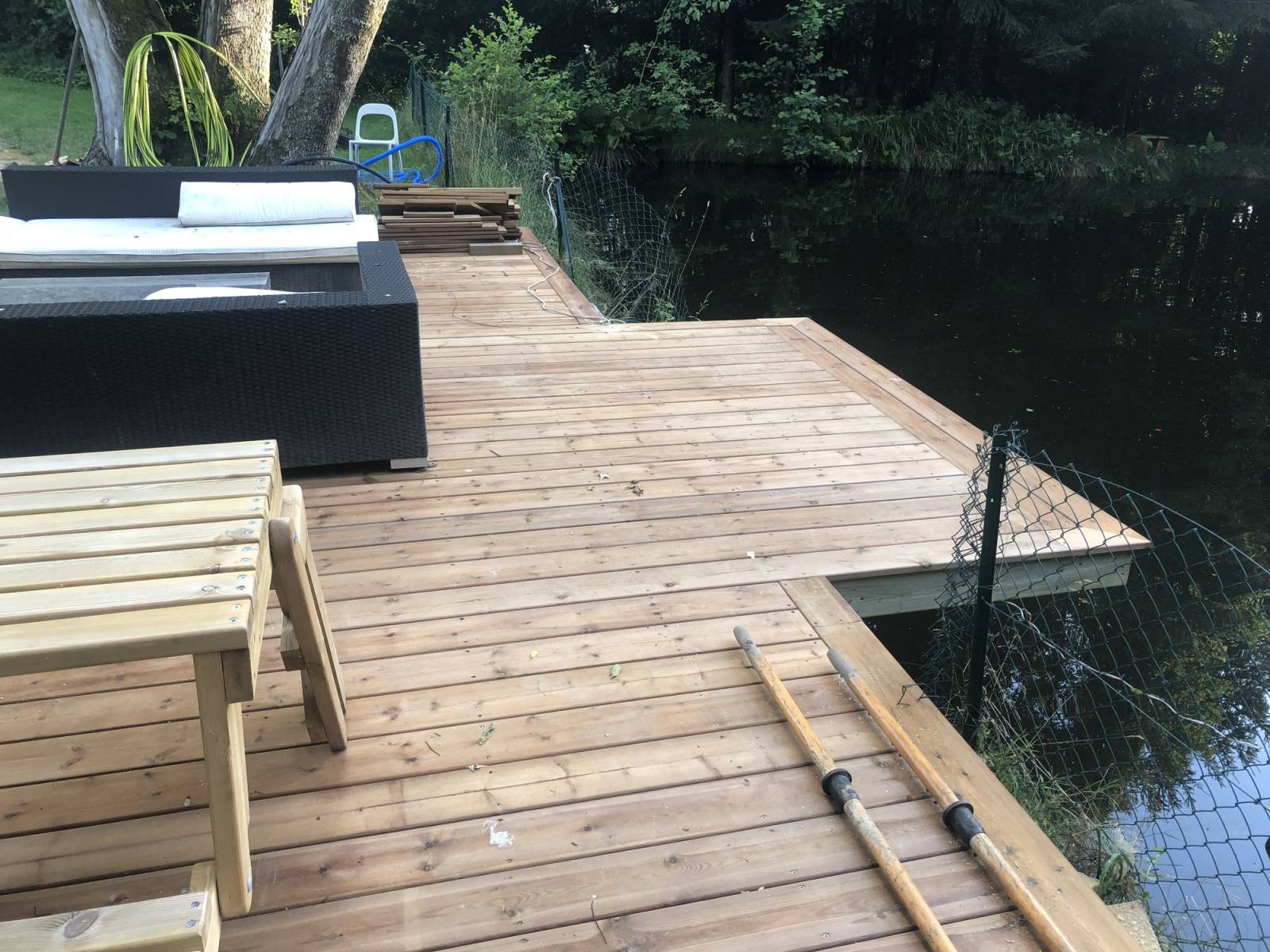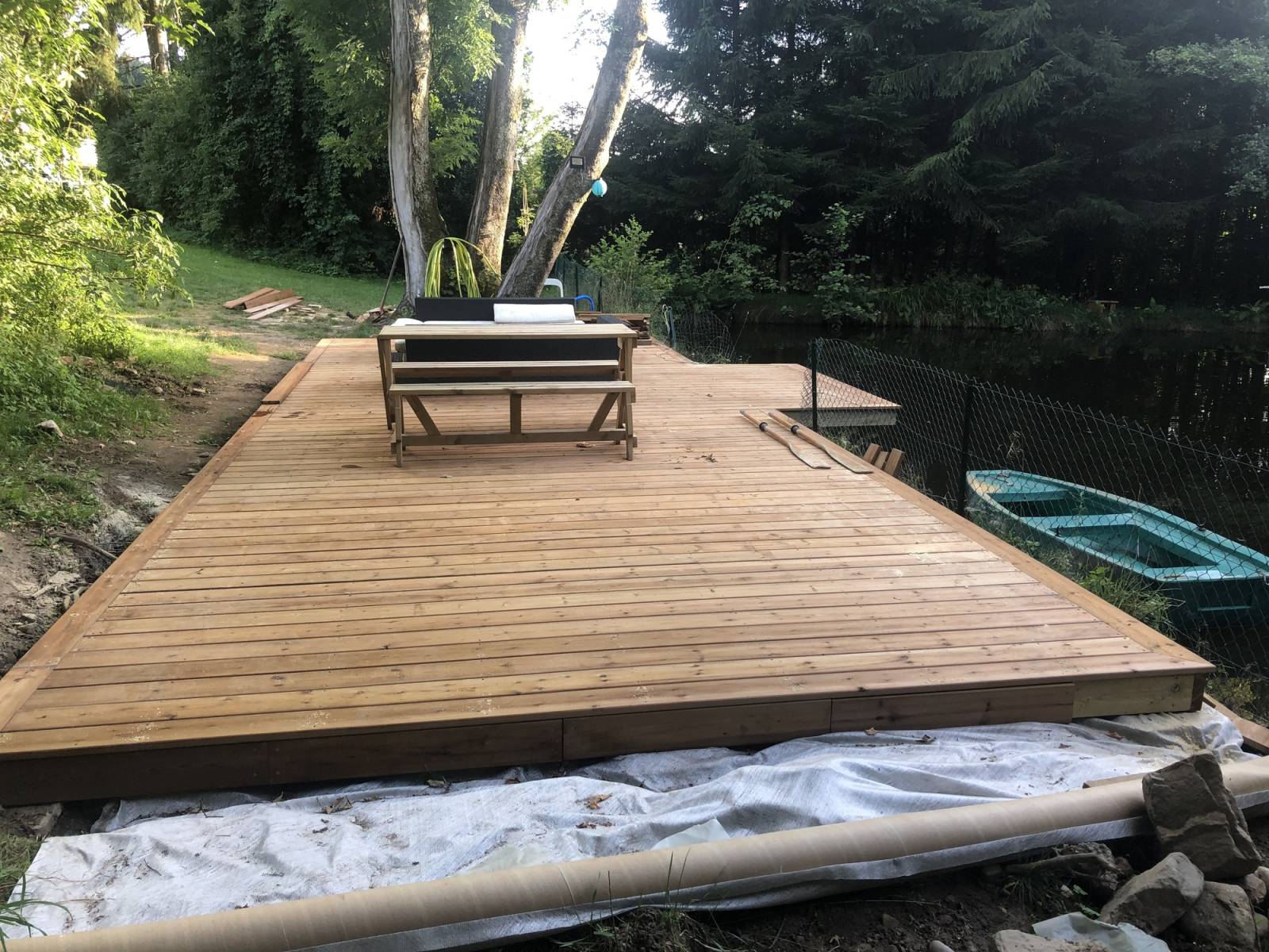 Création d’une terrasse bois de 40m² au bord d’un étang sur le secteur de Remiremont.
