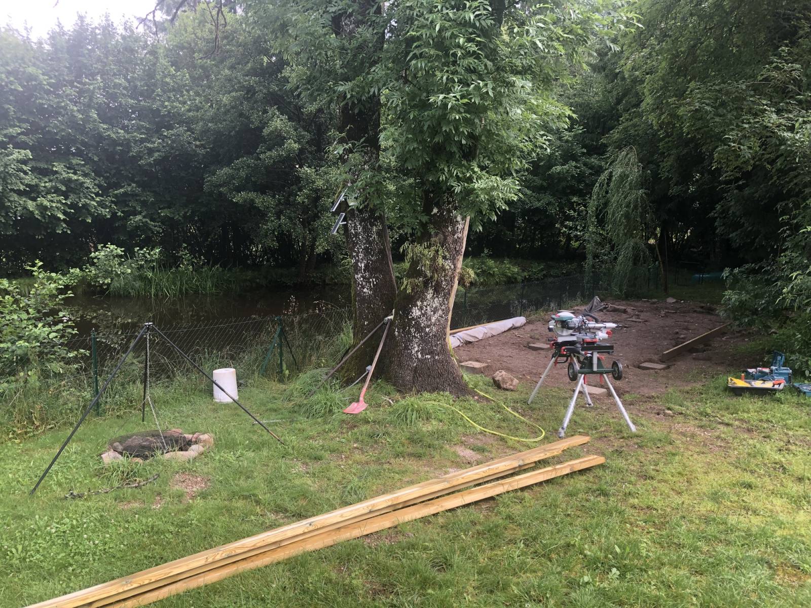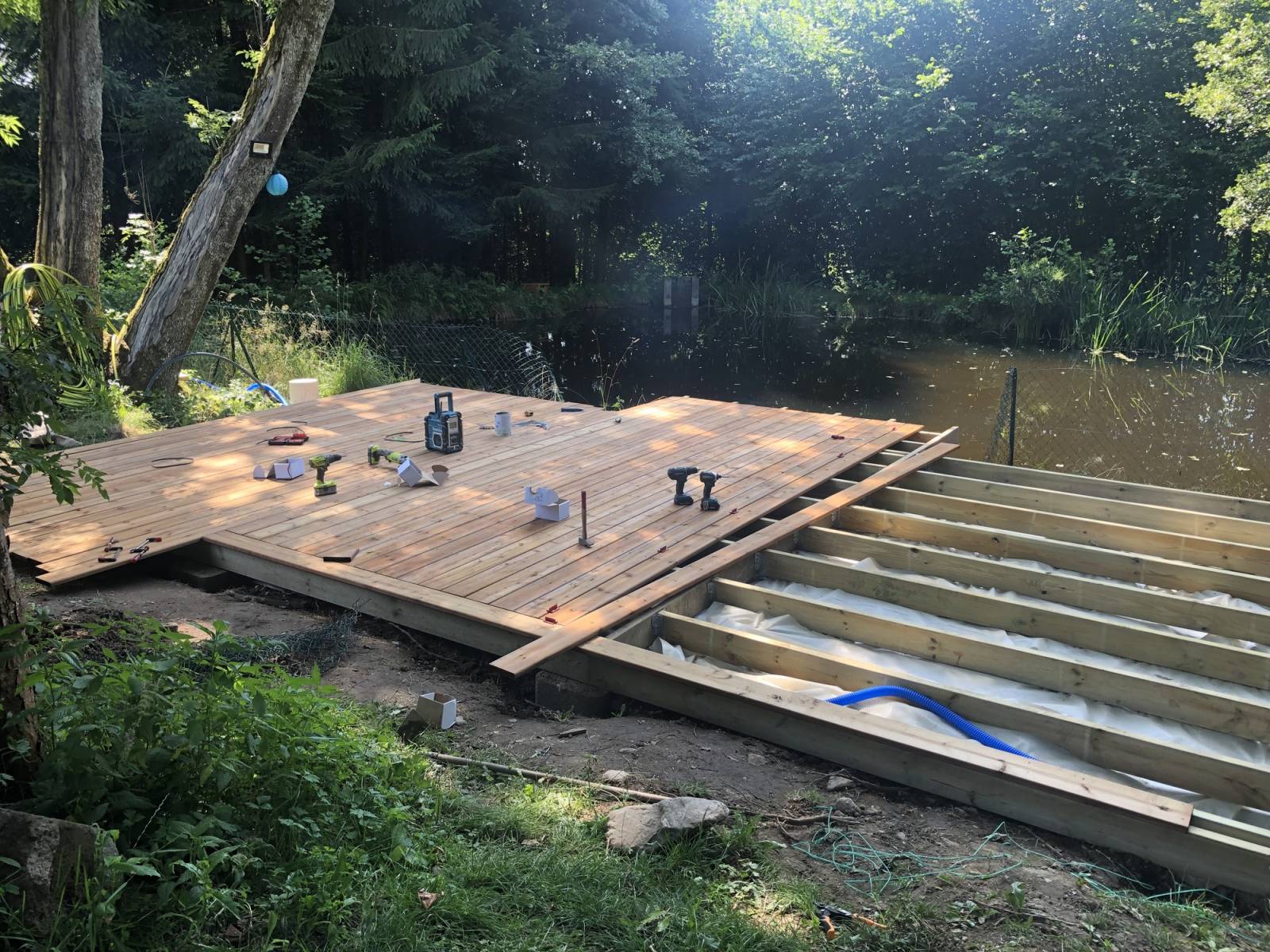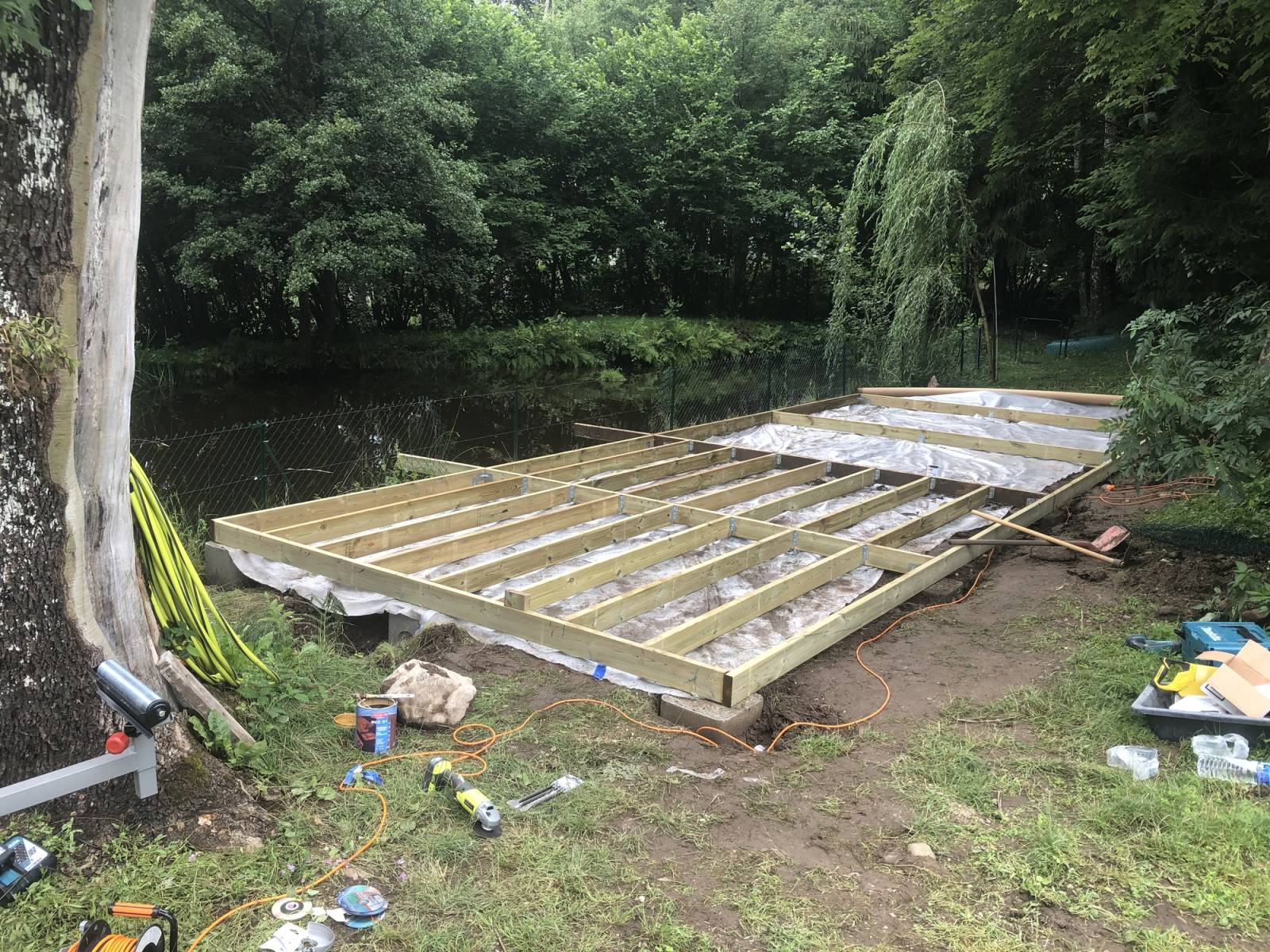 Création d’une terrasse bois de 40m² au bord d’un étang sur le secteur de Remiremont.